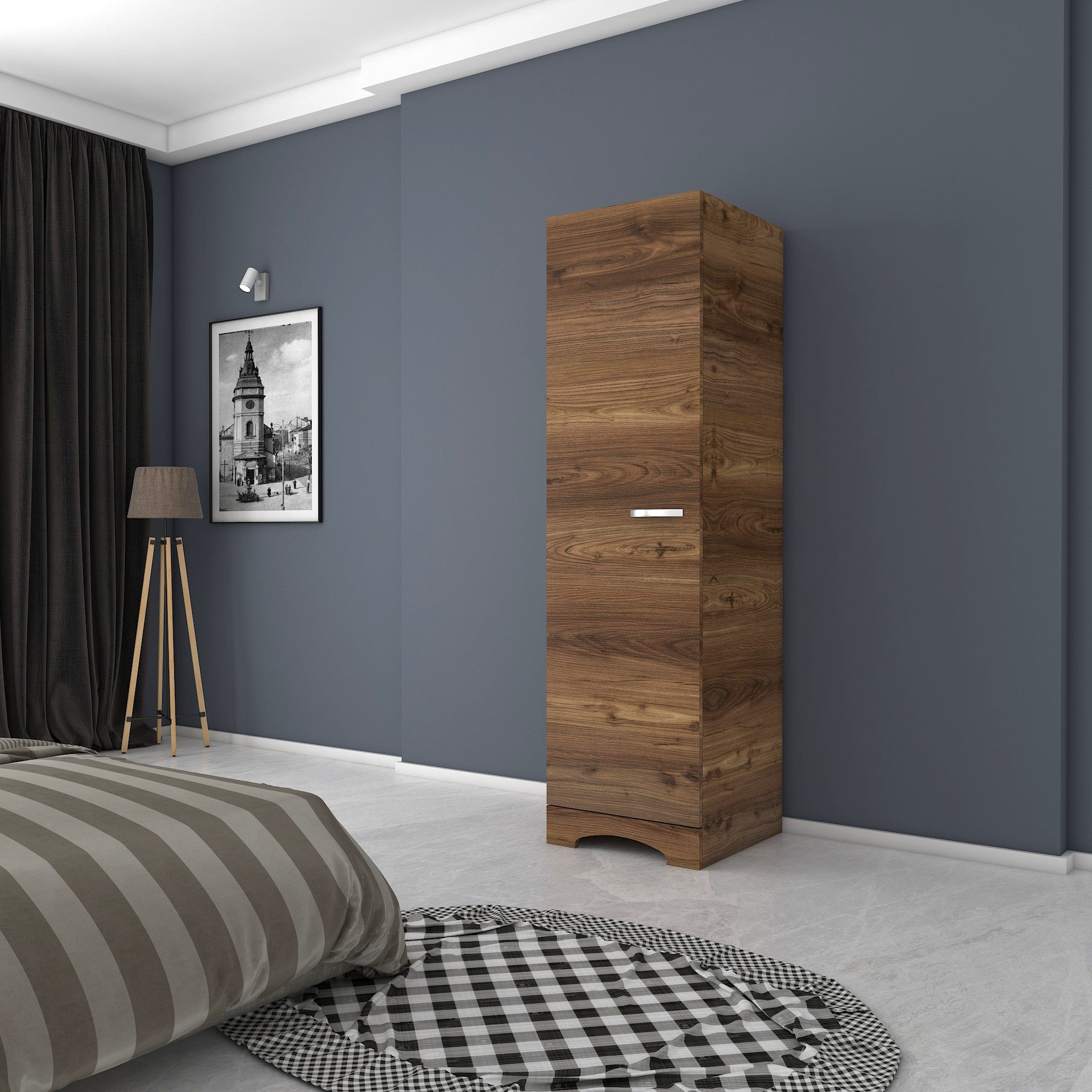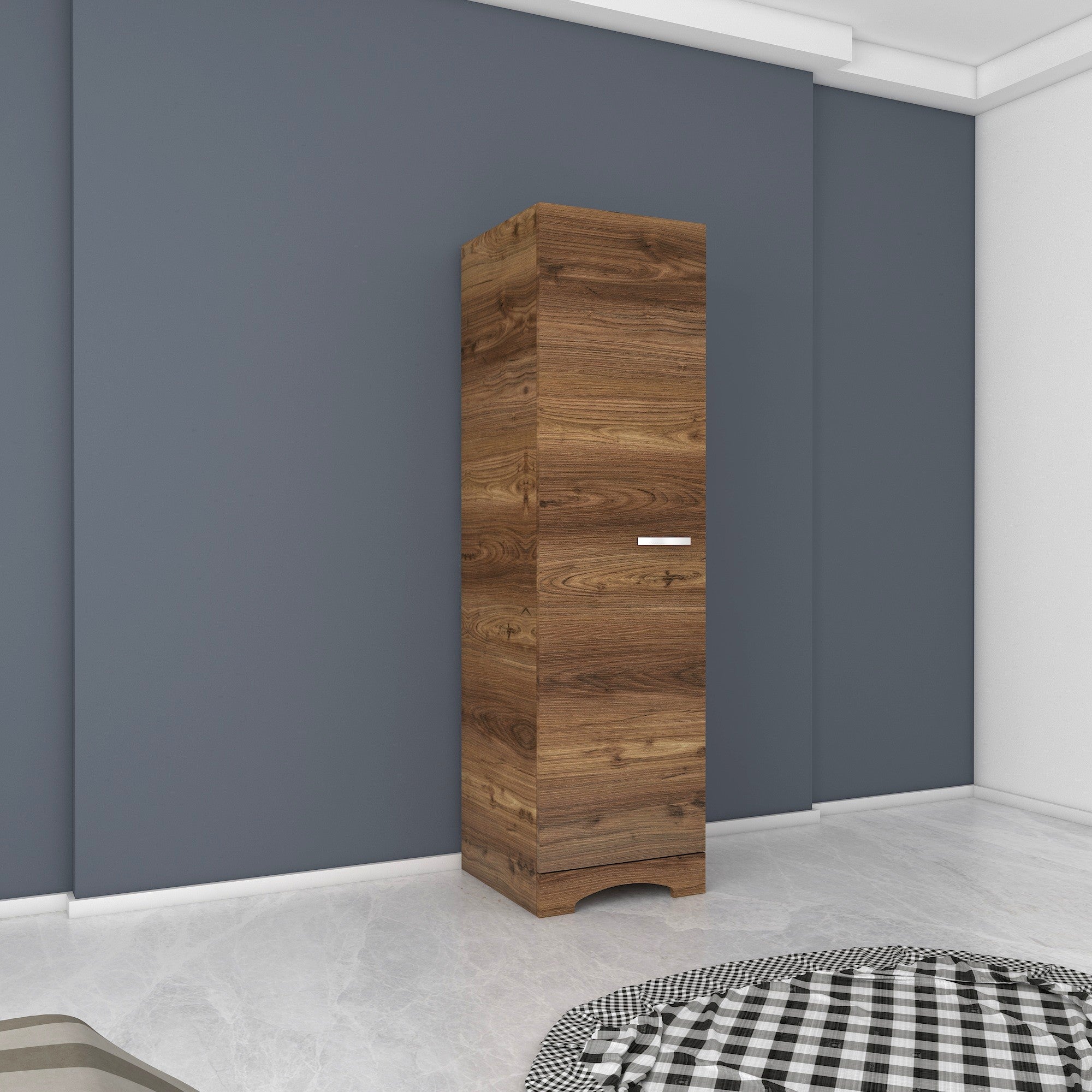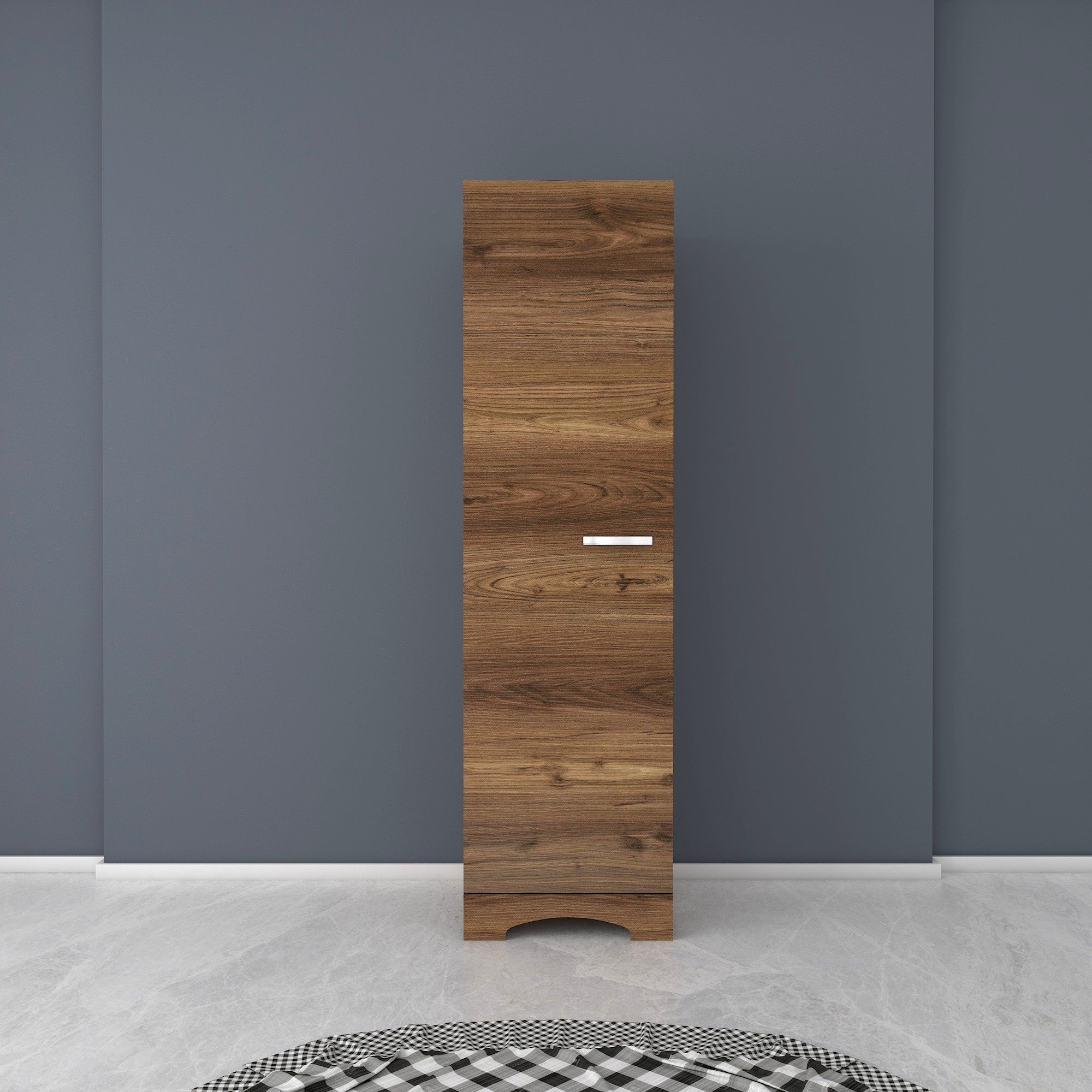 ארון בגדים בגוון חום עם ידית בצבע כסף