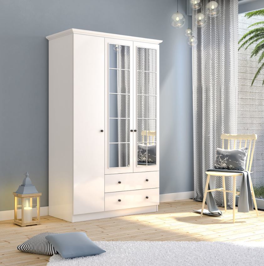 שדרג את חדר השינה שלך עם ארון פטרה דגם Patara, הכולל 3 דלתות, 2 מגירות ומראות גדולות שמוסיפות לארון מראה אלגנטי ומרווח. הארון מציע פתרון אחסון אולטימטיבי, כולל תלייה, מדפים פנימיים ומגירות לארגון פריטים קטנים, ומתאים לכל סגנון עיצוב בזכות הגוון הלבן האלגנטי._x000D_