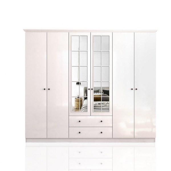 ✔ שטח אחסון רחב – 6 דלתות ו-2 מגירות לניצול מקסימלי של החלל, מתאים לבגדים, נעליים ואביזרים.