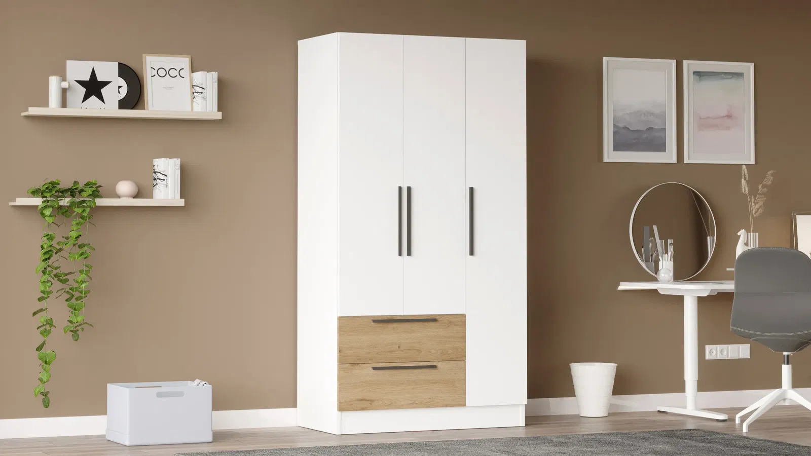 ארון בגדים 3 דלתות עם מקום לתליה, מגירות ומדפים – פתרון אחסון חכם ומעוצב!