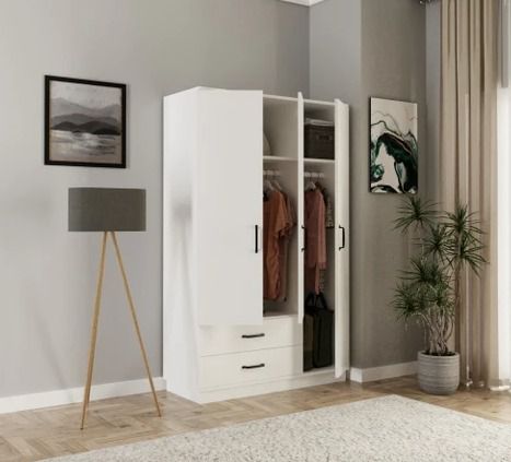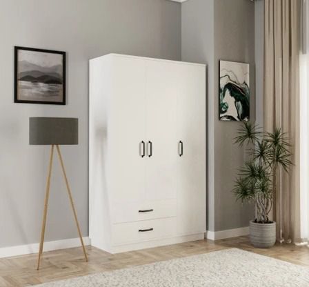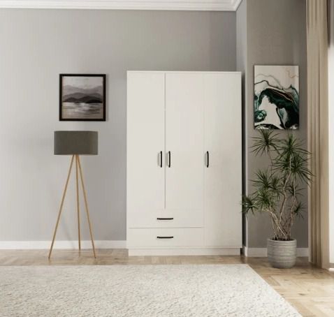 ארון בגדים 3 דלתות עם 2 מגירות – עיצוב לבן חלק ונקי
