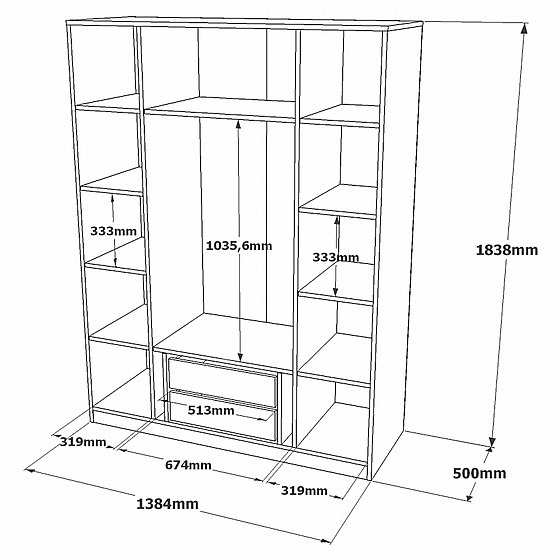 מגוון אפשרויות אחסון: מדפים מרווחים, תלייה נוחה ושתי מגירות פנימיות לארגון מושלם של הבגדים והאביזרים שלכם._x000D_