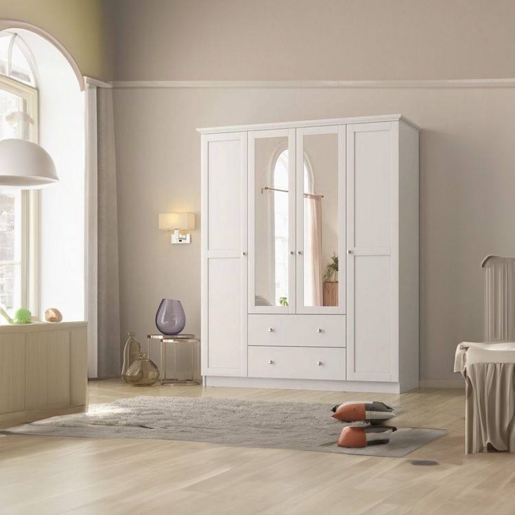 ארון הבגדים דגם שנהב מבית Twins Design מציע עיצוב אלגנטי עם מראה מרכזית. כולל 4 דלתות רחבות, מדפים מרווחים בדלתות הצד, ו2 מגירות אחסון לארגון נוח של בגדים ואביזרים בחדר השינה.