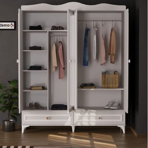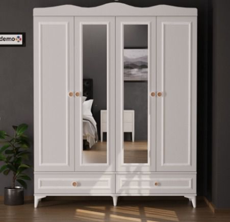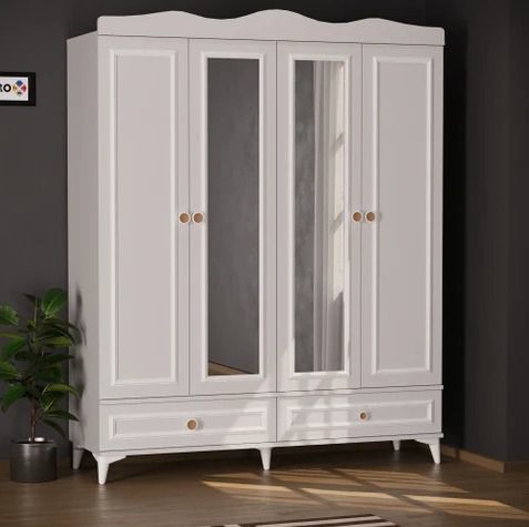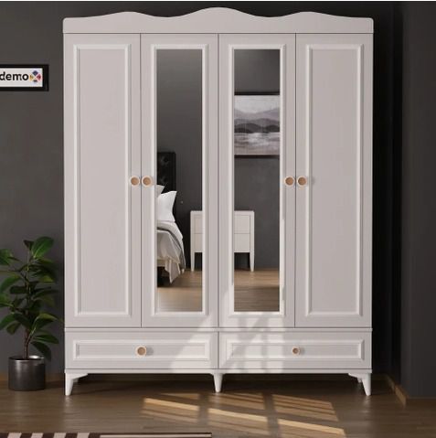 ארון בגדים 4 דלתות עם מראה ו-2 מגירות – עיצוב נקי בלבן
