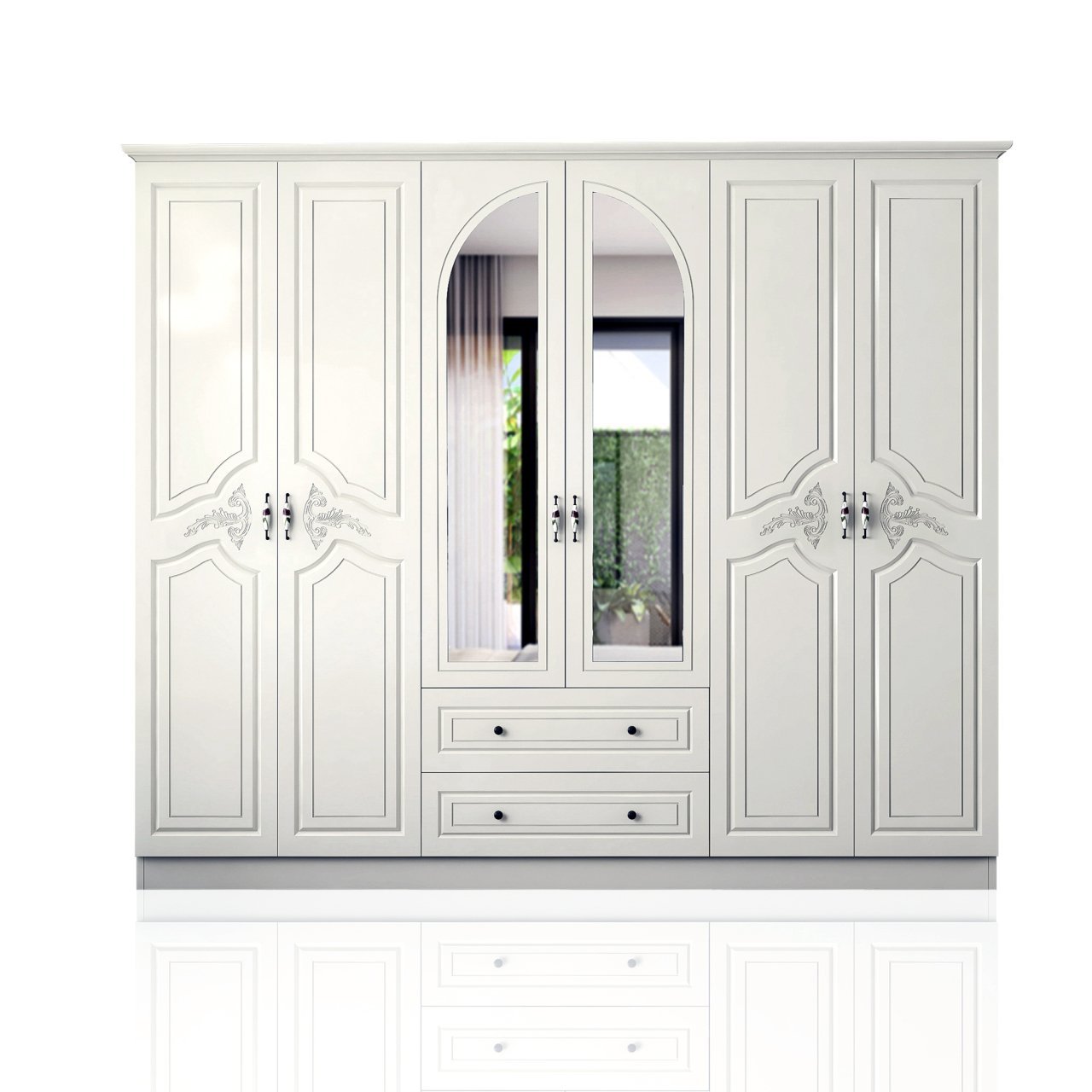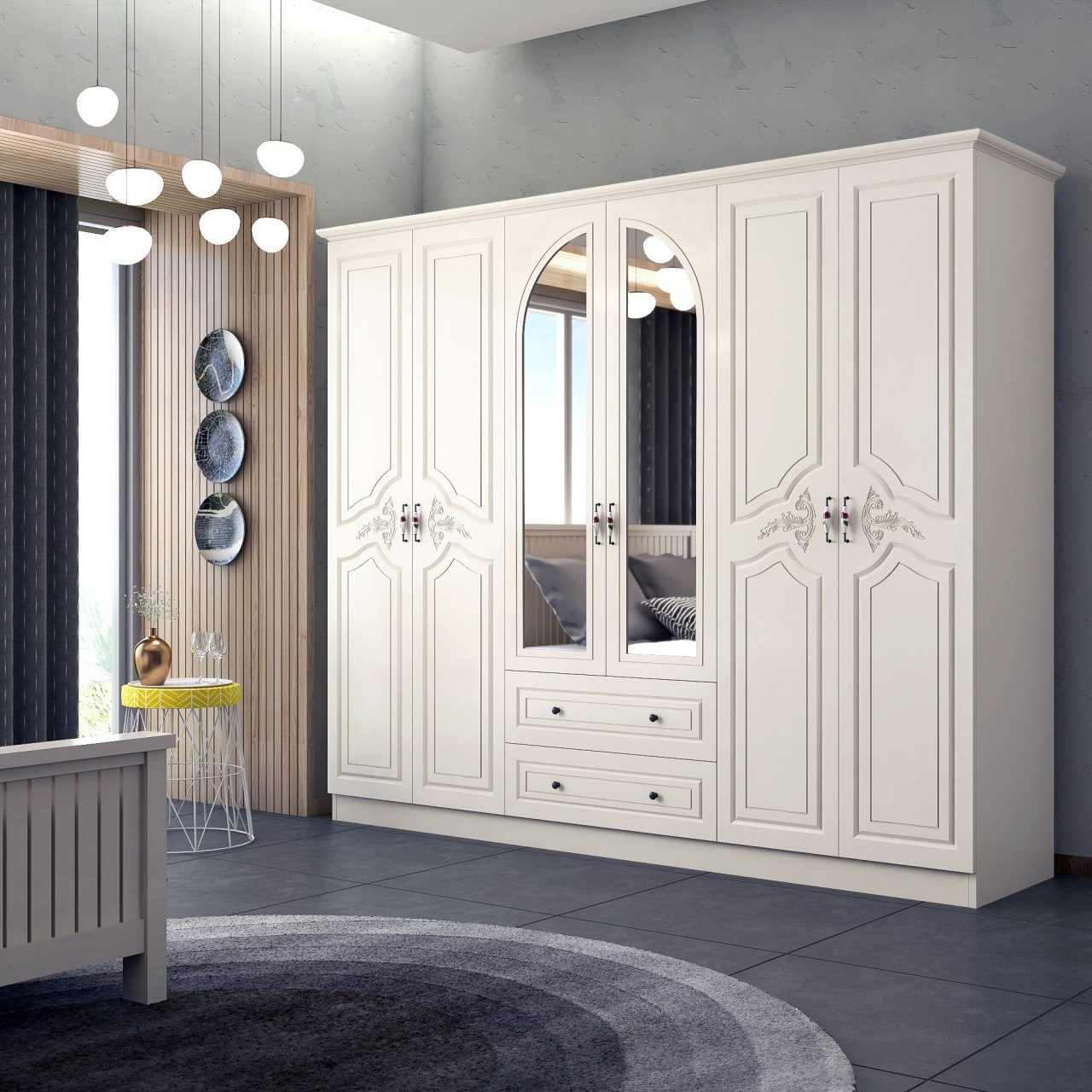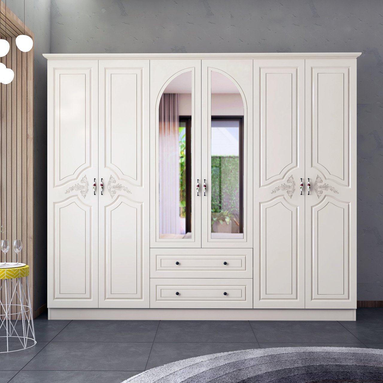 ארון בגדים 6 דלתות מעוצב עם עיטורים על הדלתות
