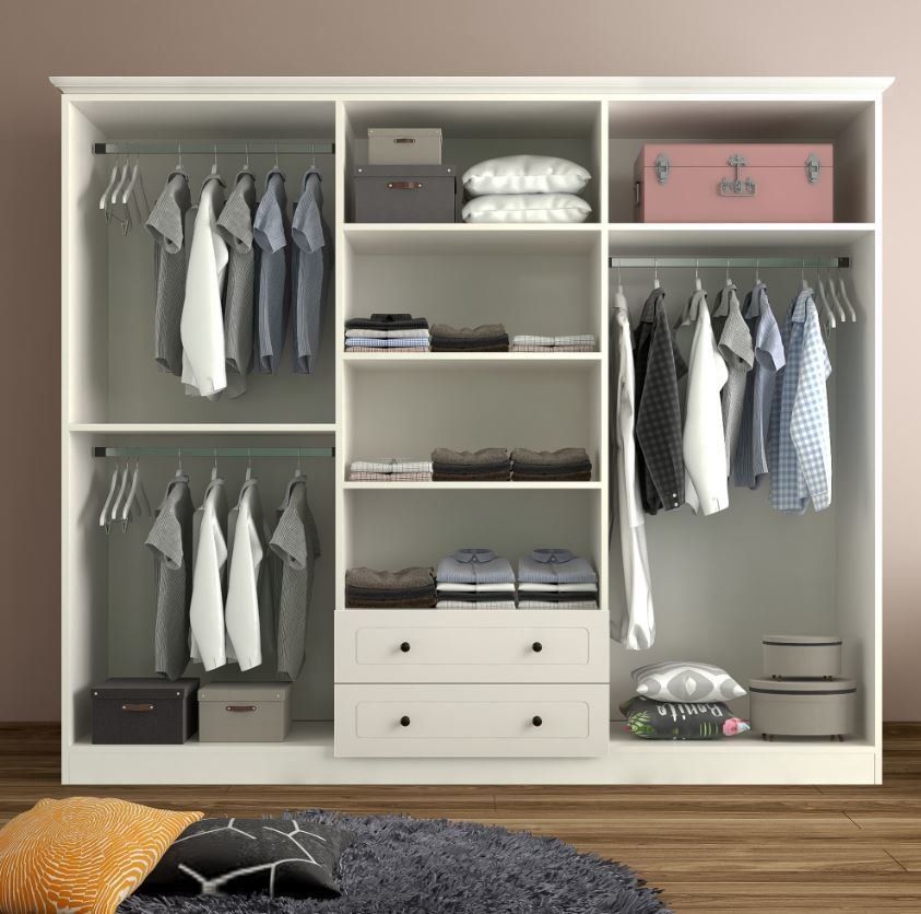 לארון מגוון רחב של מדפים ותליה לאיחסון מירבי
