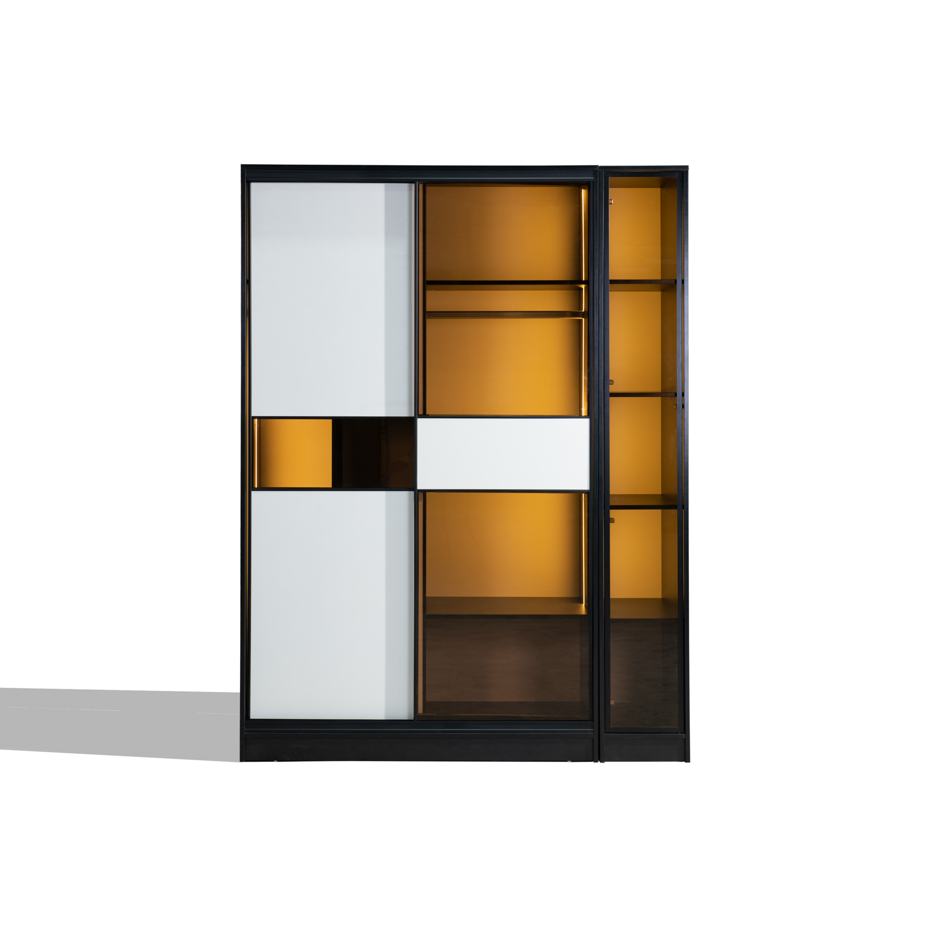 שילוב ייחודי של דלתות הזזה ודלת פתיחה, המעניק לארון מראה אלגנטי ומתוחכם שישתלב בכל חדר שינה.