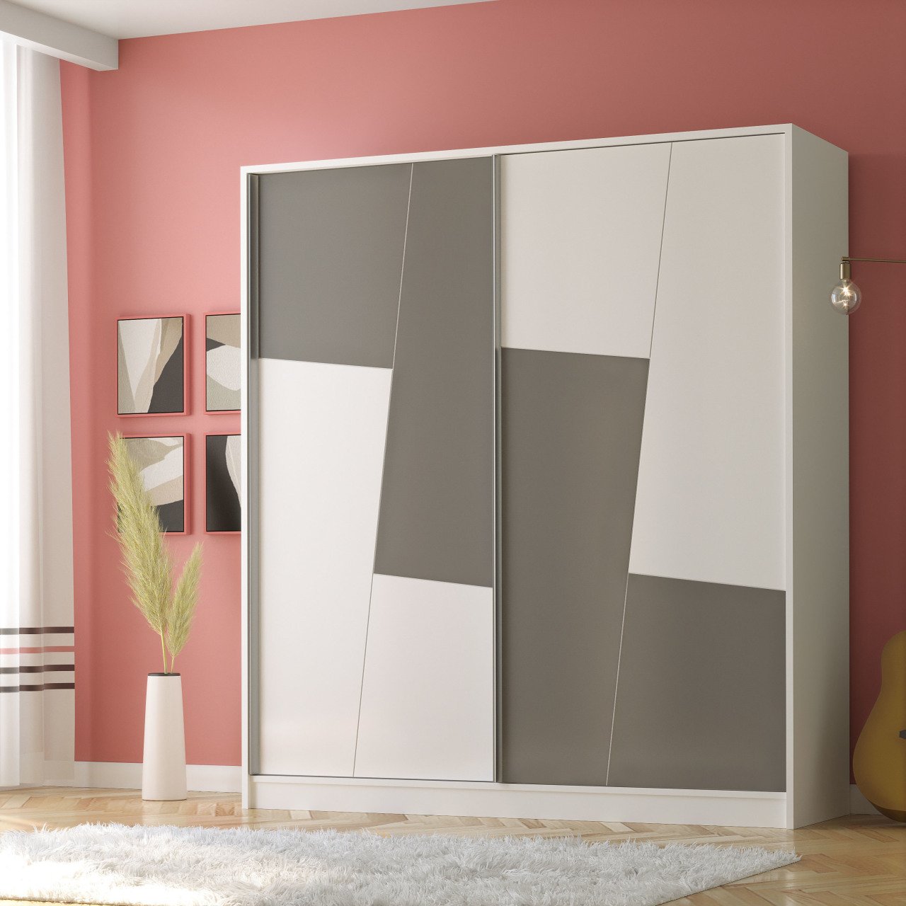 ארון הזזה מרהיב בגוון לבן עם נגיעות אפור, בעיצוב מודרני שמשדרג כל חדר שינה.