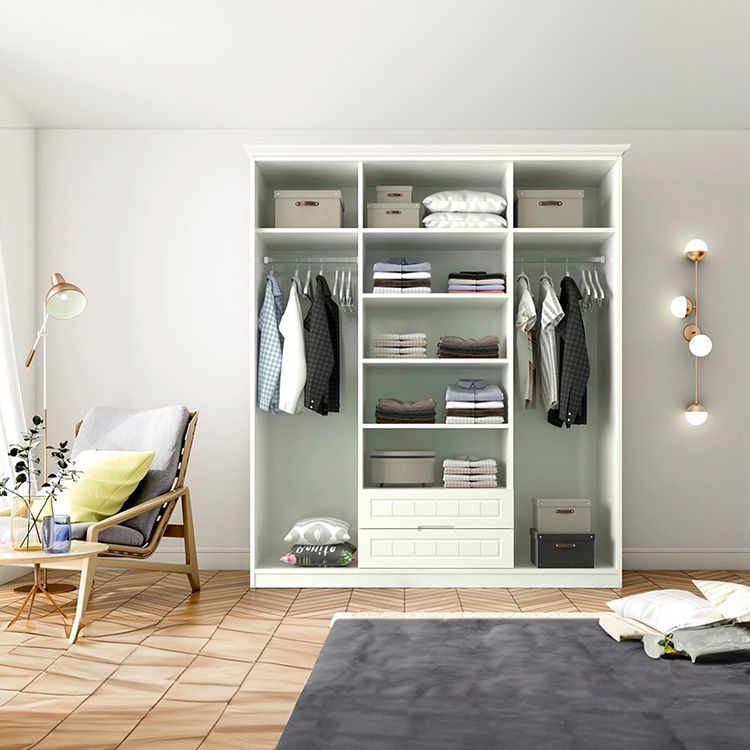 לארון יש מוט תליה רחב ומדפים לאחסון מירבי