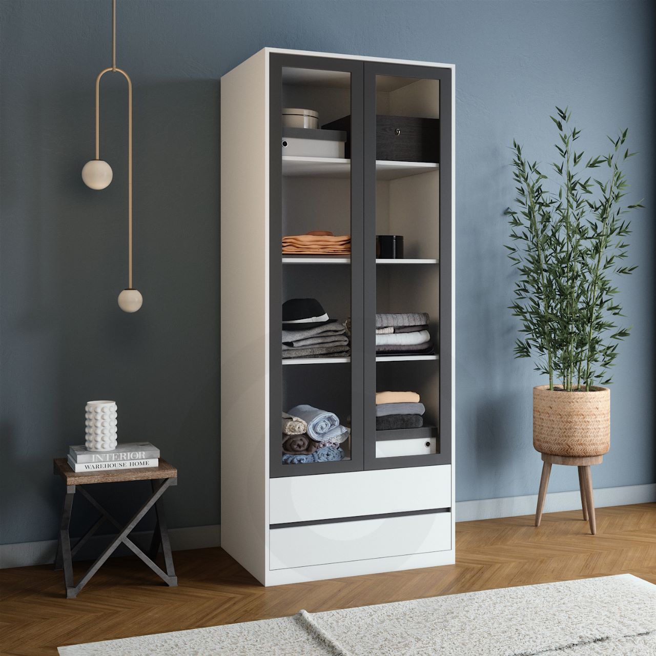שתי הדלתות ושתי המגירות מספקות מקום אחסון בשפע, מה שמקל על שמירה על חפציך מאורגנים ומסודרים.