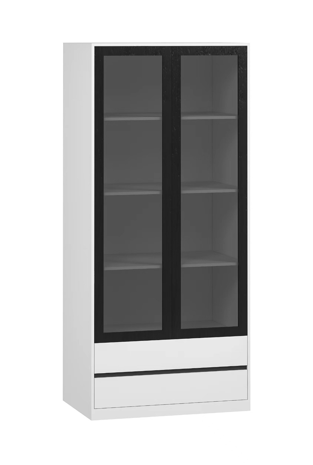 ארון ויטרינה בעיצוב הנקי והקלאסי ביותר שאפשר לבקש, מגיע עם תאורת לדים ,2 דלתות מזכוכית כפולה ומחוסמת נגד שריטות , 4 מדפים ושני מגירות תחתונות . הארון מגיע בצבע עץ לבן עם מסגרת שחורה מסביב זכוכית חום כהה