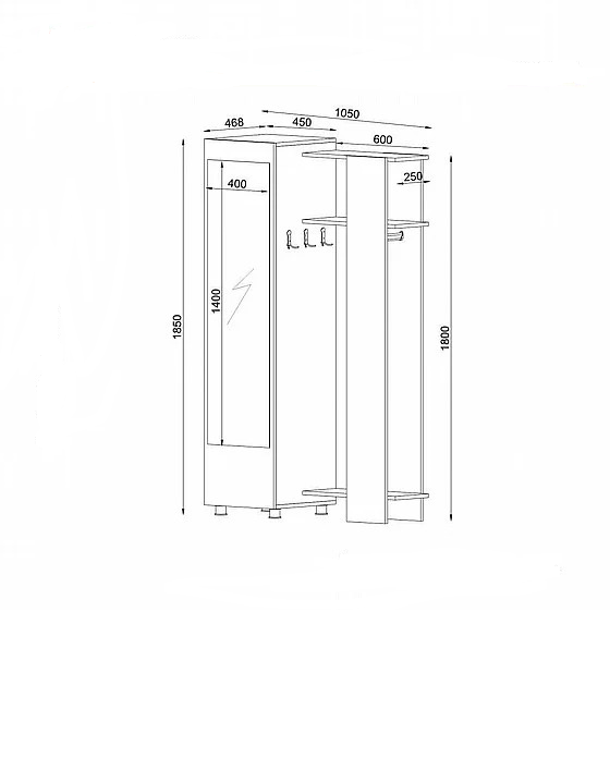 כולל מתלה למעילים וצעיפים, מדף לנעליים ודלת עם תא אחסון נוסף.