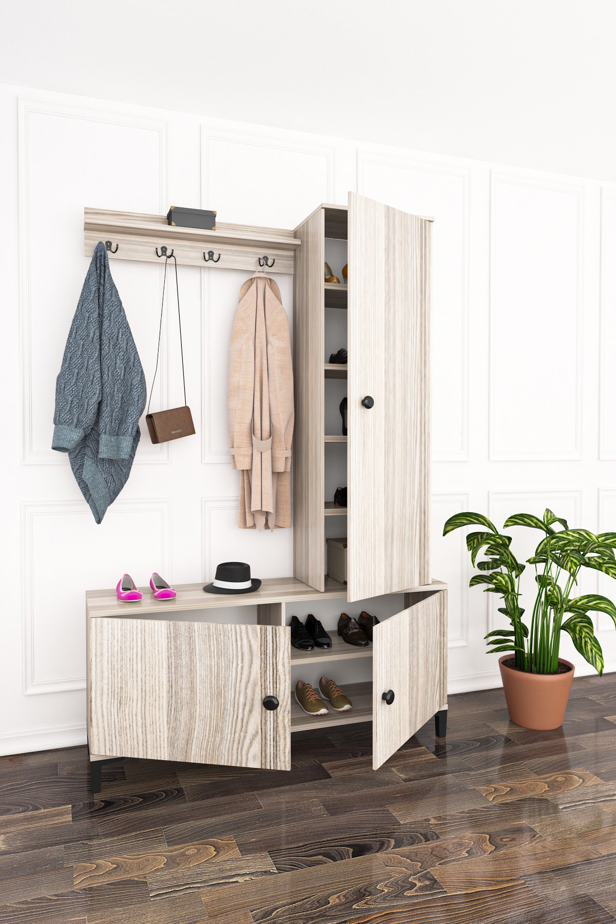 ארון תחתון עם מדפים לנעליים