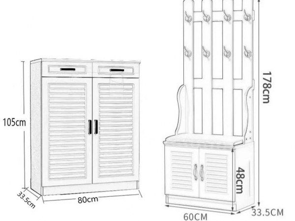 עומק 33.5 ס”מ המאפשר אחסון נוח של נעליים, מעילים ותיקים