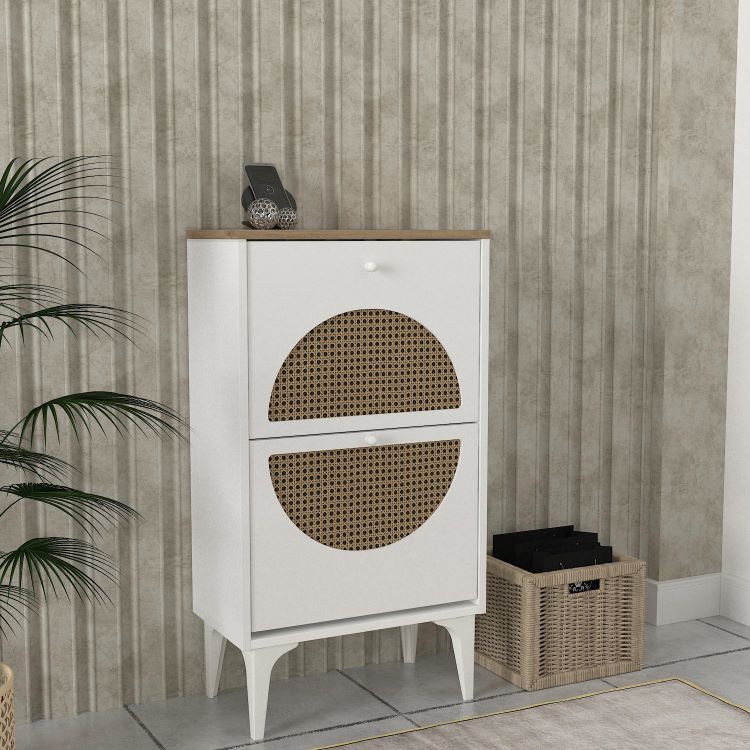 ארון הנעליים Burito הוא פתרון עיצובי ופרקטי לבית – משלב אחסון חכם עם עיצוב אלגנטי בגימור לבן ונגיעות ראטן. המבנה הצר והגבוה הופך אותו למושלם עבור הכניסה לבית, מסדרונות צרים או חדרי שינה.