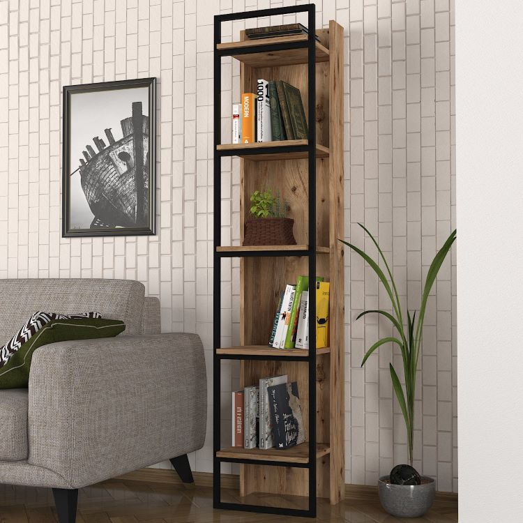 ארון ספרים קלאסי בעלת חמישה מדפים מעץ