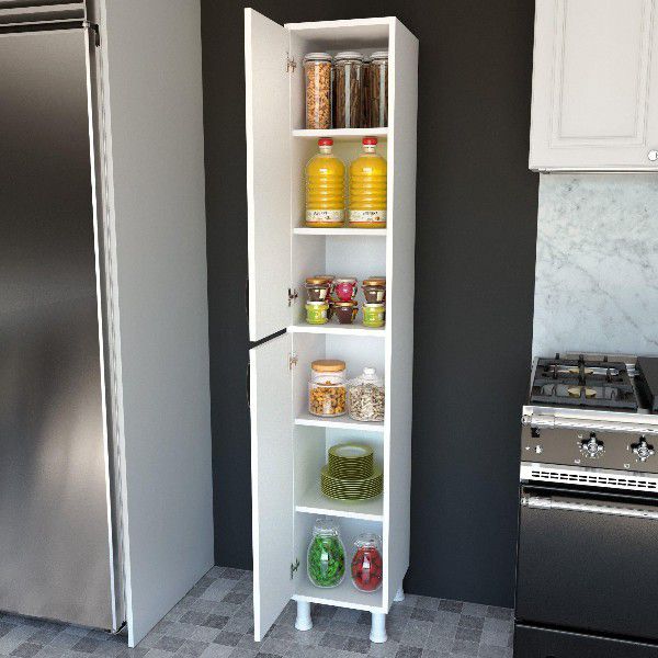 ארון שירות קומפקטי ופונקציונלי בצבע לבן, מספק פתרון אחסון חכם תוך שמירה על עיצוב אלגנטי ונקי!