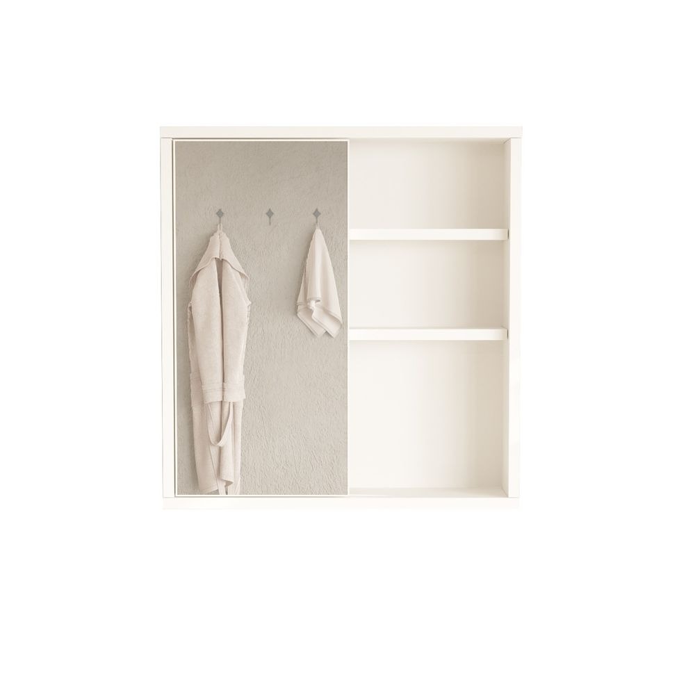 הארון כולל מדפים פנימיים נוחים לאחסון חפצים חיוניים ודלת סגירה ששומרת על סדר ואסתטיקה.