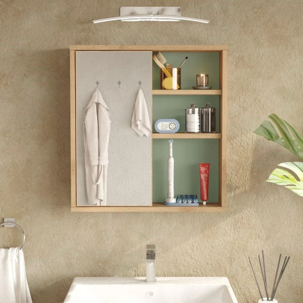 הארון מציע מדפים פנימיים לאחסון נוח של מוצרי טיפוח, חומרי ניקוי ועוד, ומספק סדר וארגון בחדר האמבטיה בצורה חכמה ומודרנית.