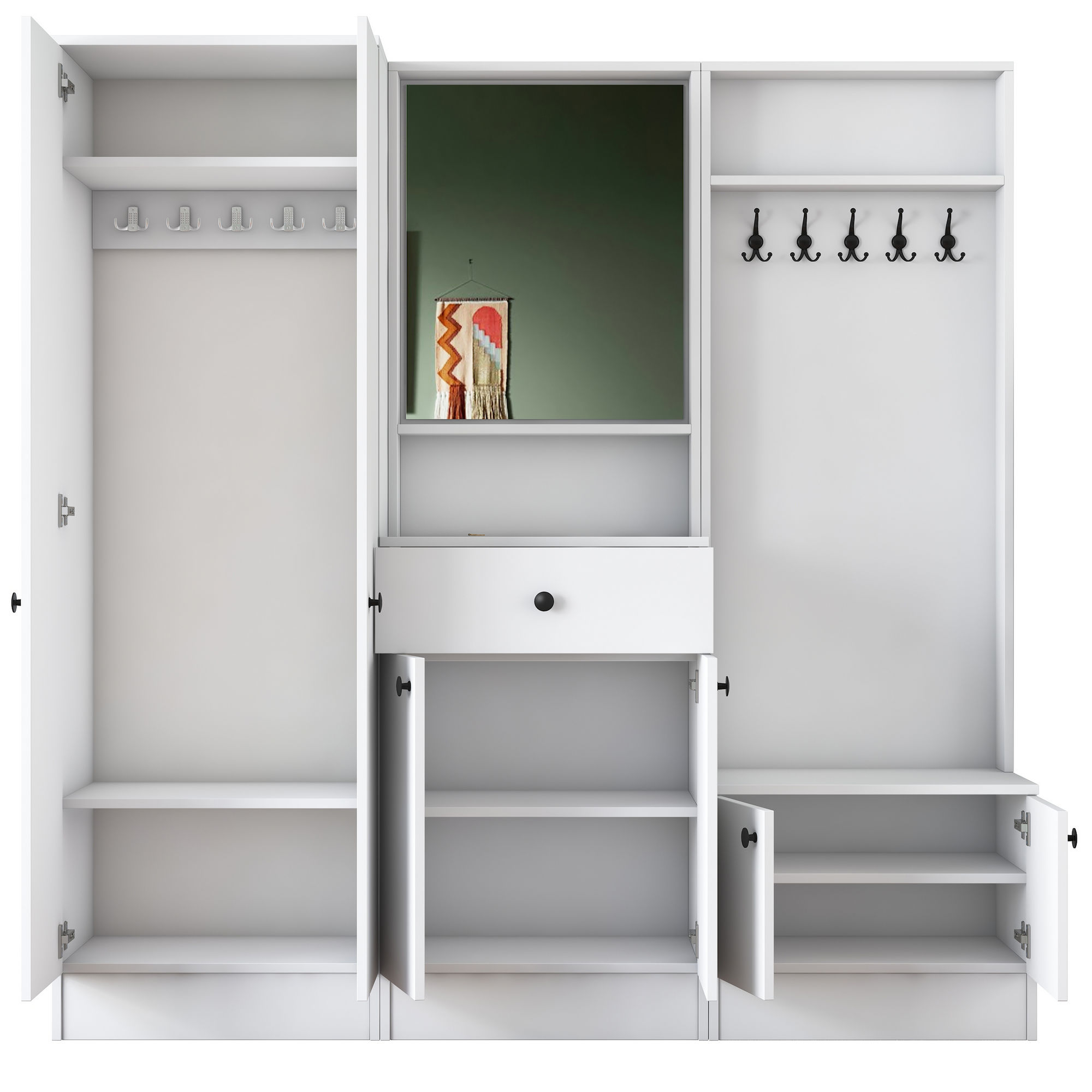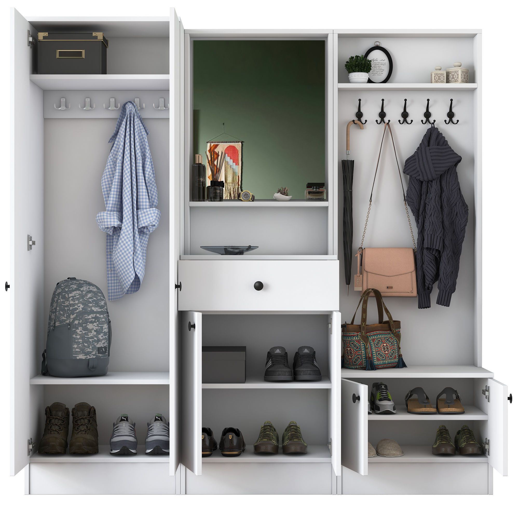 ✔ פונקציונליות גבוהה – עיצוב חכם שמספק מקום לאחסון מעילים, נעליים, תיקים ואביזרים נוספים.