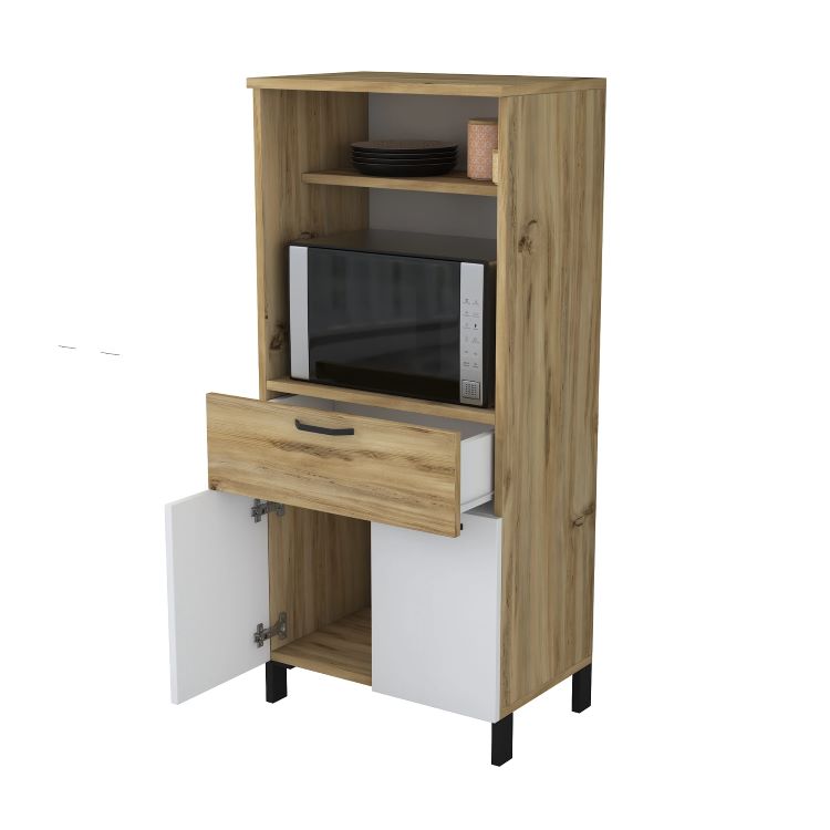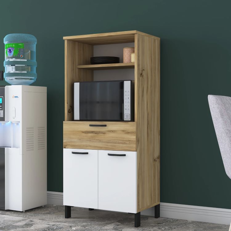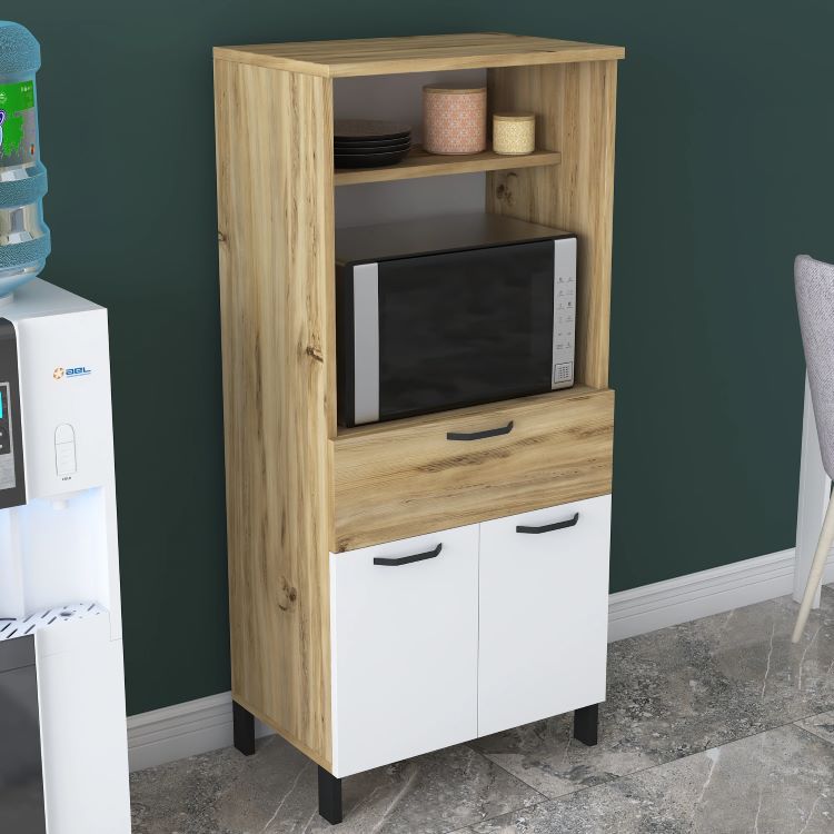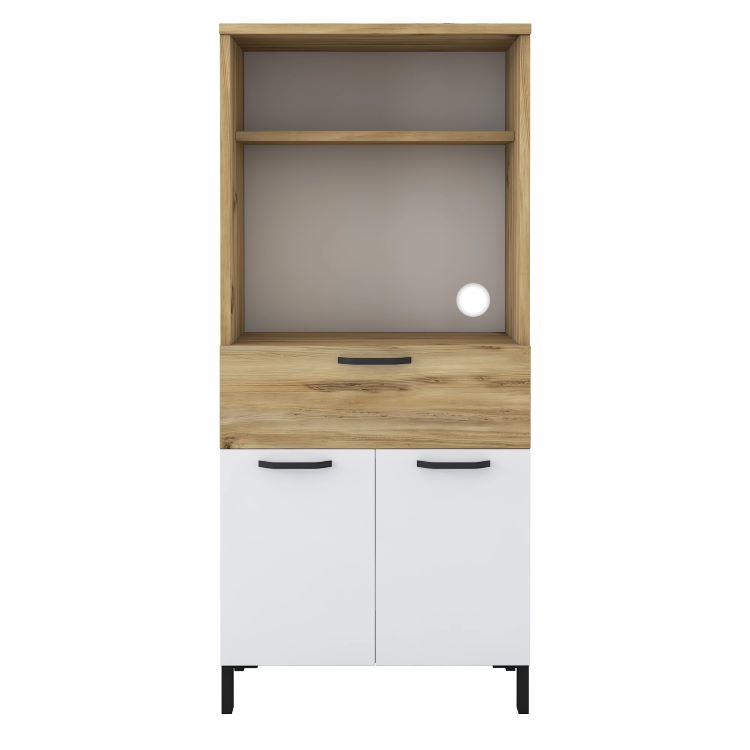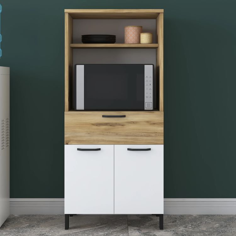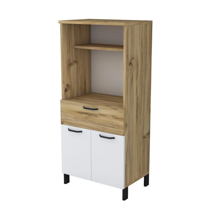 ארון שירות למקרוגל בצבע לבן משולב עץ בהיר