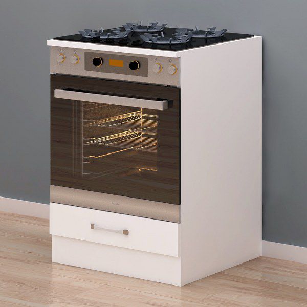 הארון מעוצב בגימור לבן מודרני ונקי, קל לניקוי, ומותאם למידות סטנדרטיות לתנור וכיריים.