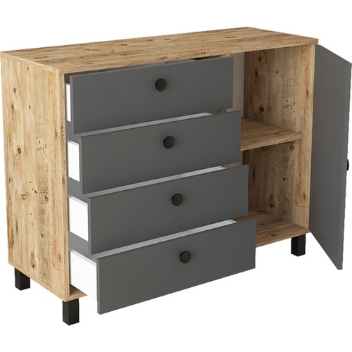 בנוסף, הארון מכיל 4 מגירות נוחות לאחסון ומהווה פריט שימושי ודקורטיבי כאחד