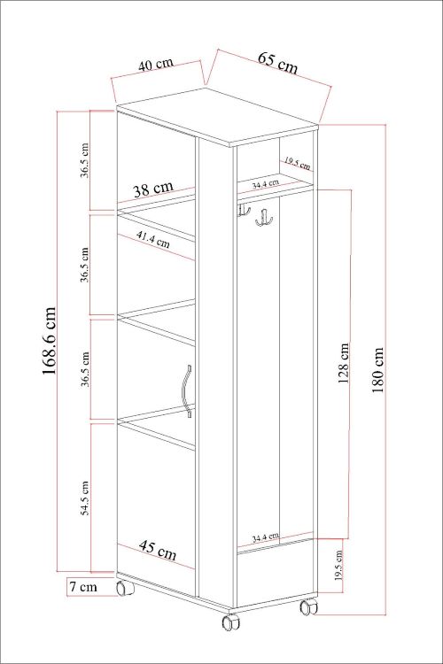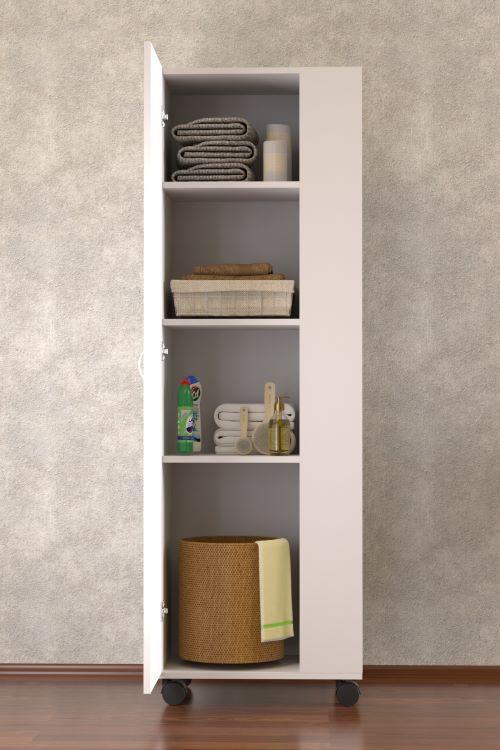 ניתן להזיז את הארון בקלות ממקום למקום, והוא כולל מדפים פנימיים לאחסון מרבי, בנוסף לתא חיצוני מיוחד לאחסון מטאטא, מגב וציוד ניקוי נוסף.