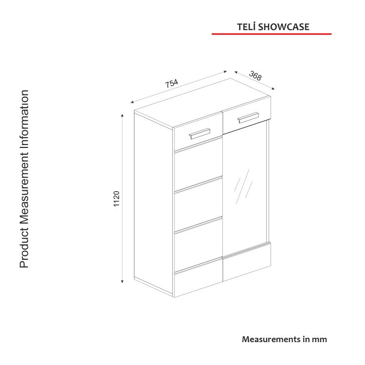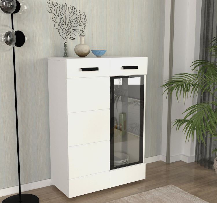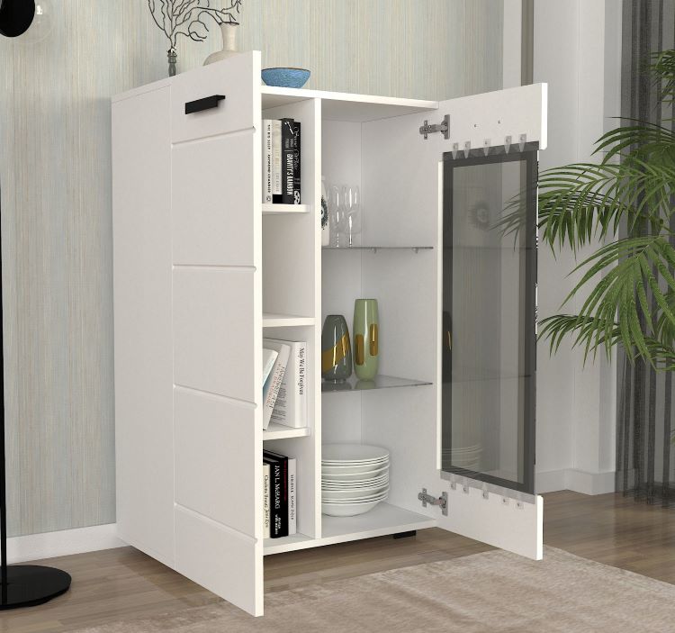 ארון שירות עם דלת זכוכית ומדפים פנימיים