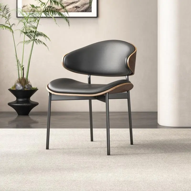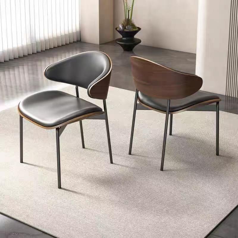 זוג כיסאות מעוצב בקווים נקיים ועכשוויים, מושלם לפינת אוכל, משרד ביתי או אזור ישיבה מעוצב. משלב ריפוד נעים בגוון שחור עם מסגרת עץ טבעי, ורגליים עשויות פלדת פחמן (Carbon Steel) לחוזק ועמידות לאורך זמן.