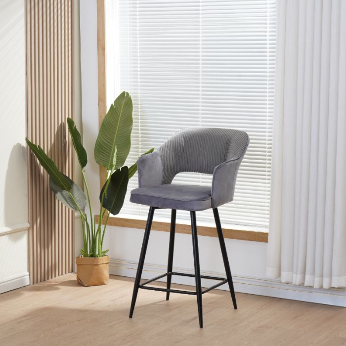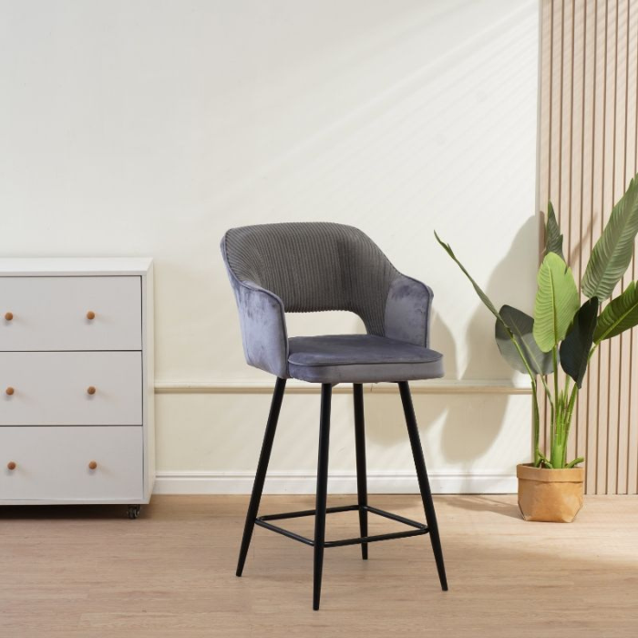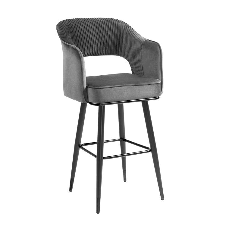 זוג כסאות בר מעוצבים בד קטיפה בצבע אפור – דגם אוליביה מבית Twins Design