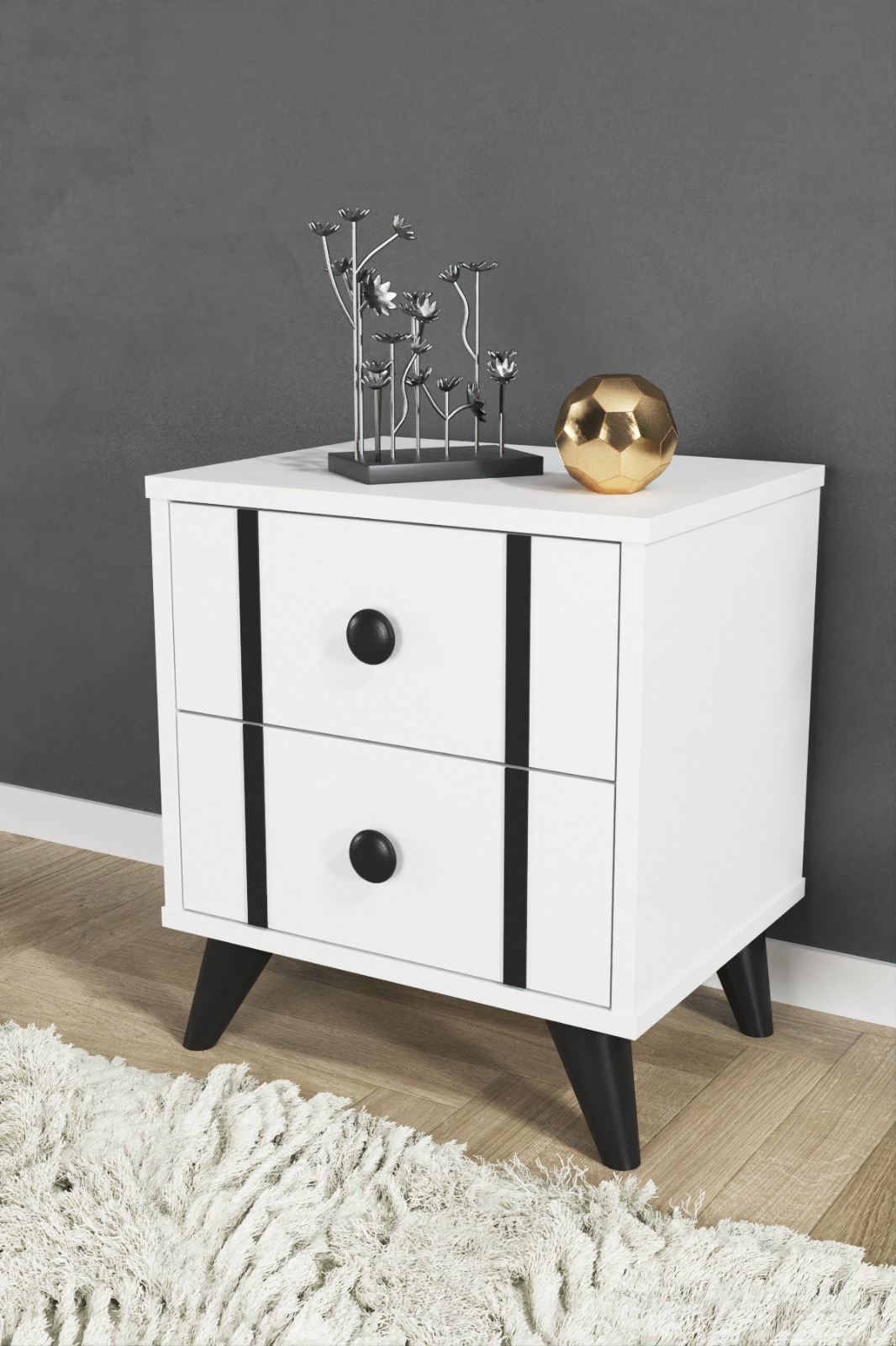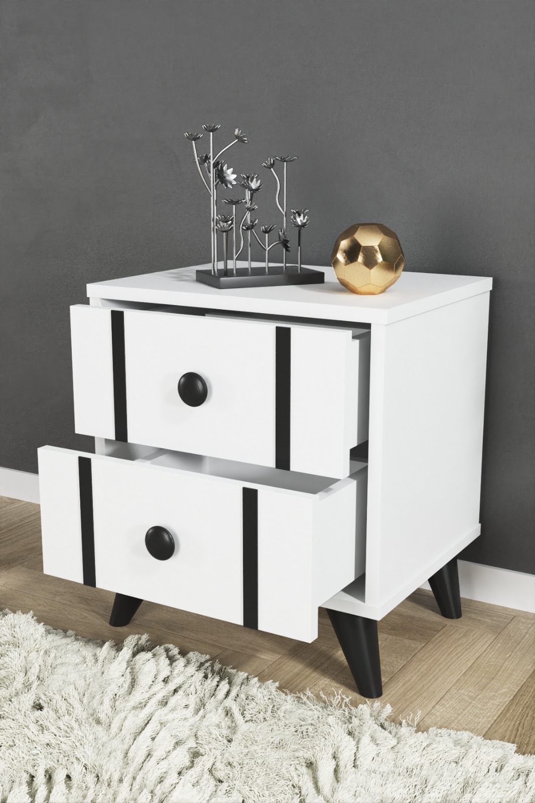 צבע השידה לבן בשילוב פסים שחורים