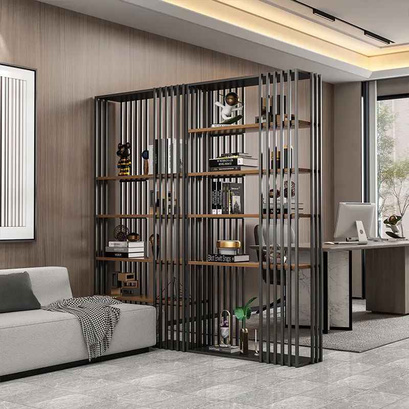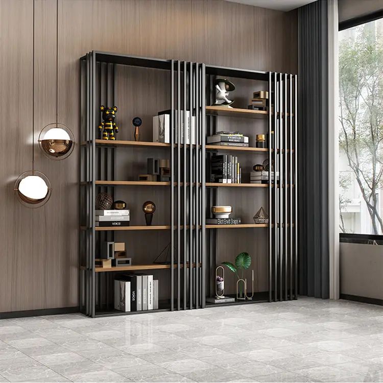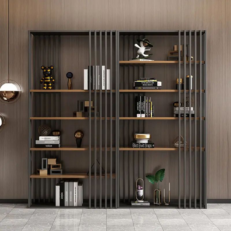 כוננית ספרים מודרנית בעיצוב יוקרתי עם שילוב עץ ומתכת – Twins Design