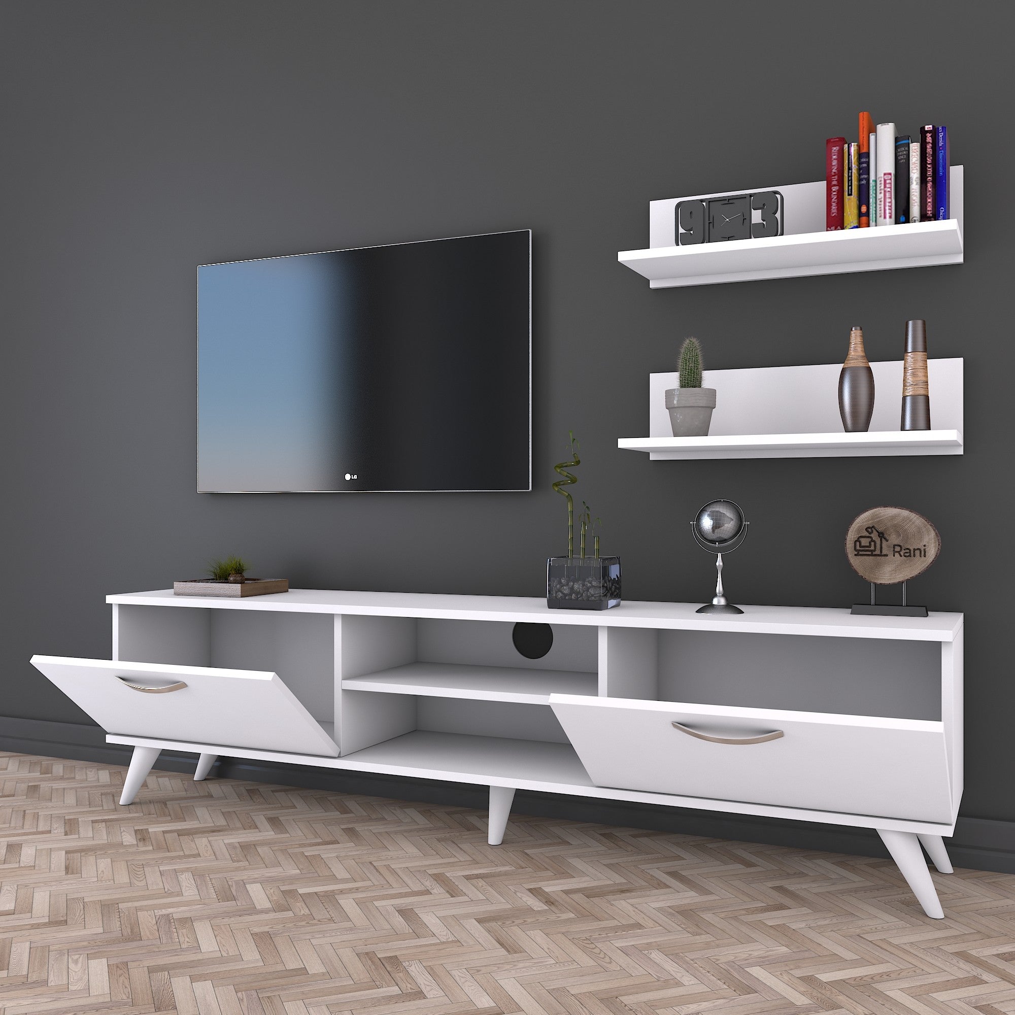 מגיע עם שני מדפים תואמים להנחת חפצי נוי