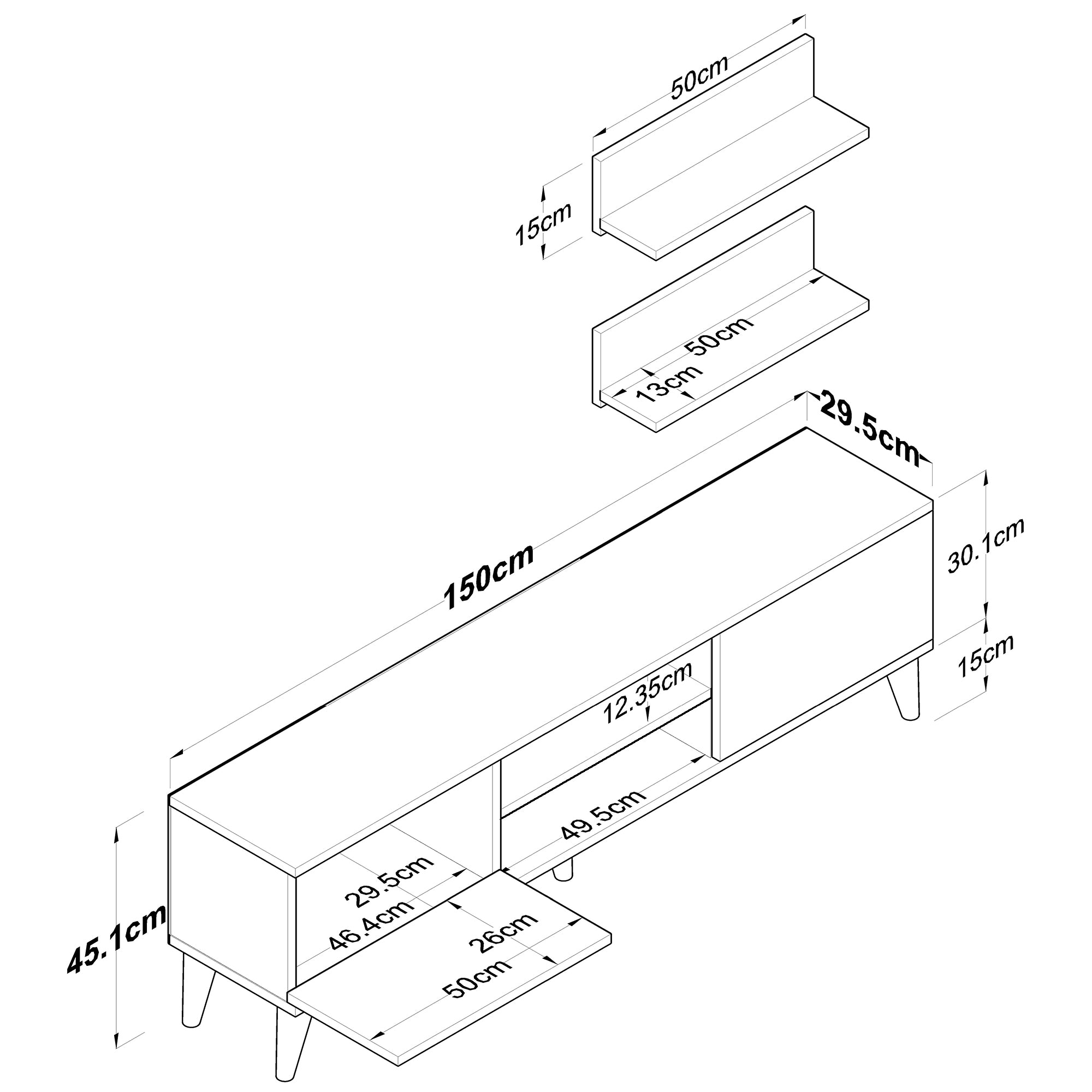 למזנון יש שני מדפים חיצוניים להנחת ממיר ועוד…
