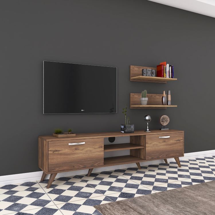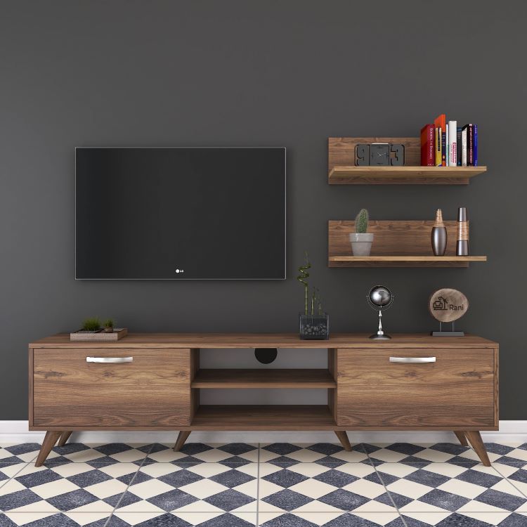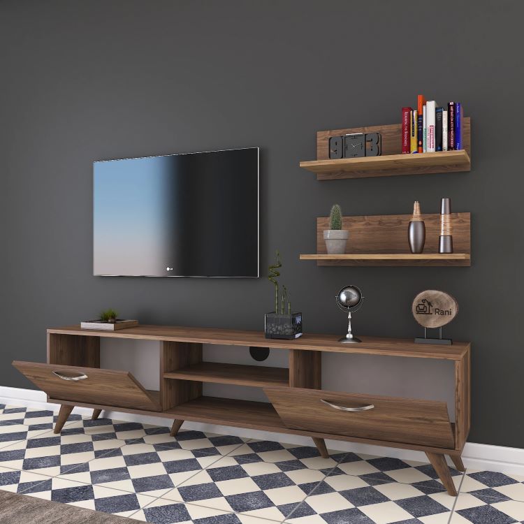 מזנון עומד בגוון חום כהה כולל סט מדפים תואם
