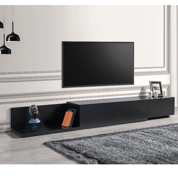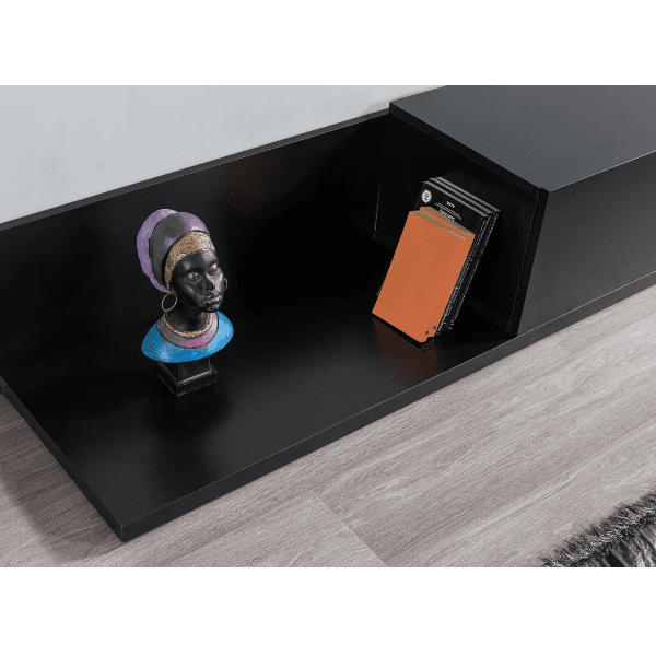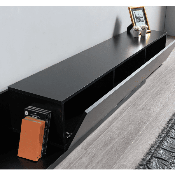 מזנון הטלוויזיה Unit מציע עיצוב אלגנטי ומודרני בגוון שחור, המשתלב באופן מושלם בכל חלל מגורים. עם תאי אחסון מרווחים, תוכלו לארגן בקלות ציוד מדיה, קונסולות משחקים ושלטים. המזנון עשוי עץ מיוצר עמיד בלחות ומים, מה שמבטיח איכות ועמידות לאורך זמן.