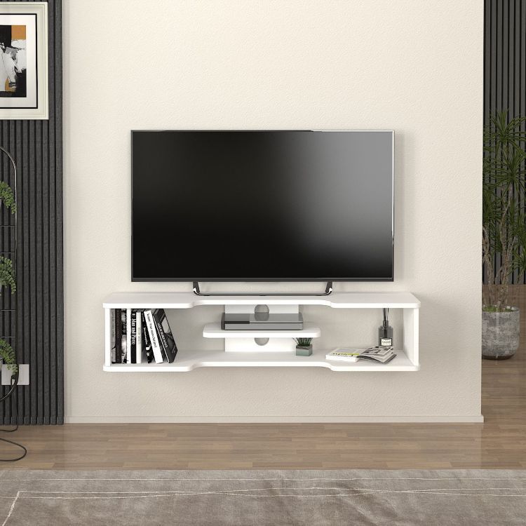 פתרון אחסון חכם – שתי דלתות הנפתחות כלפי מטה לאחסון נוח של מדיה ודקורציה._x000D_