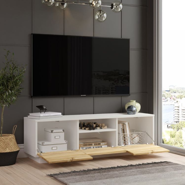 מזנון טלוויזיה עומד מודרני עם מקום אחסון.