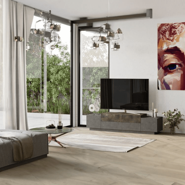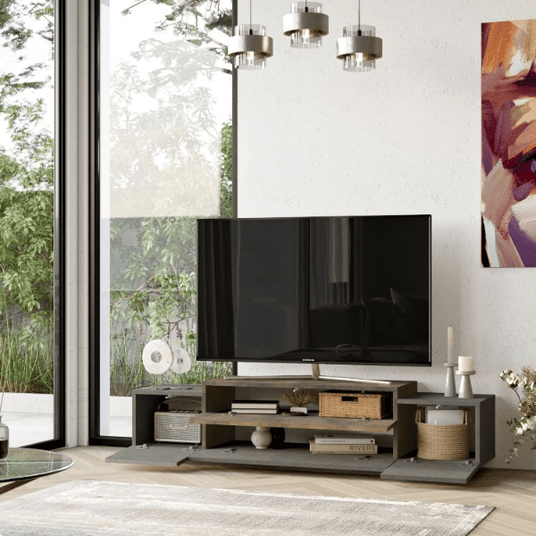 ◾ אפור בשילוב עץ כהה – למראה קלאסי ואלגנטי