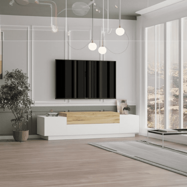 ◾ לבן בשילוב עץ בהיר – למראה מודרני ונקי