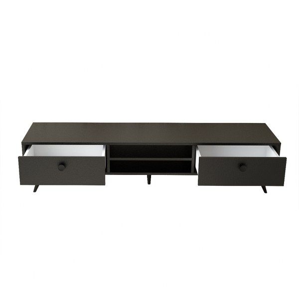 מזנון עומד לונדון מבית Twins Design מציע עיצוב מודרני ונקי בצבע שחור מט, המשלב אחסון חכם עם עיצוב אלגנטי. המגירות והמדפים הפתוחים מספקים פתרון אידיאלי לאחסון והצגת ציוד טלוויזיה, ממיר או קונסולות גיימינג.