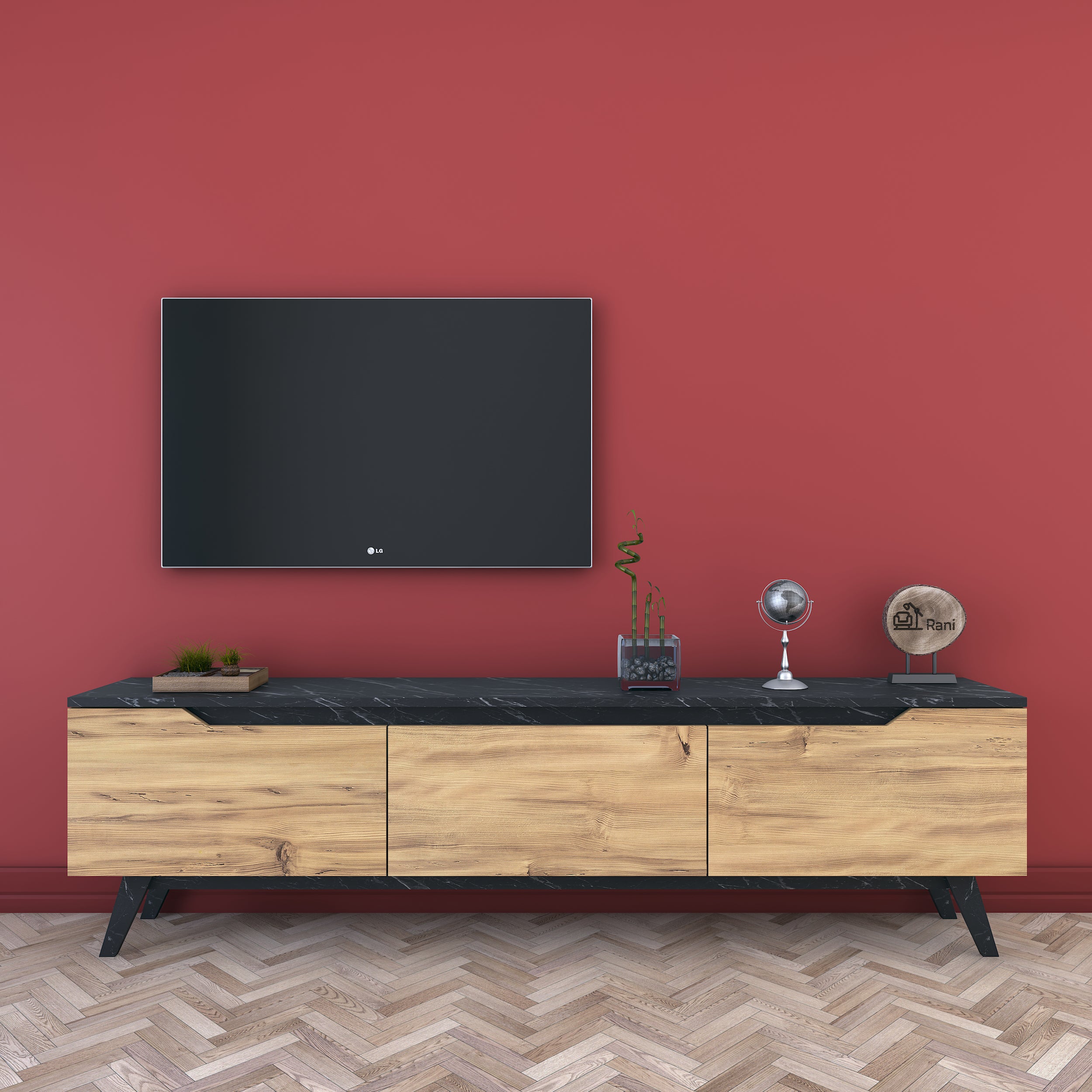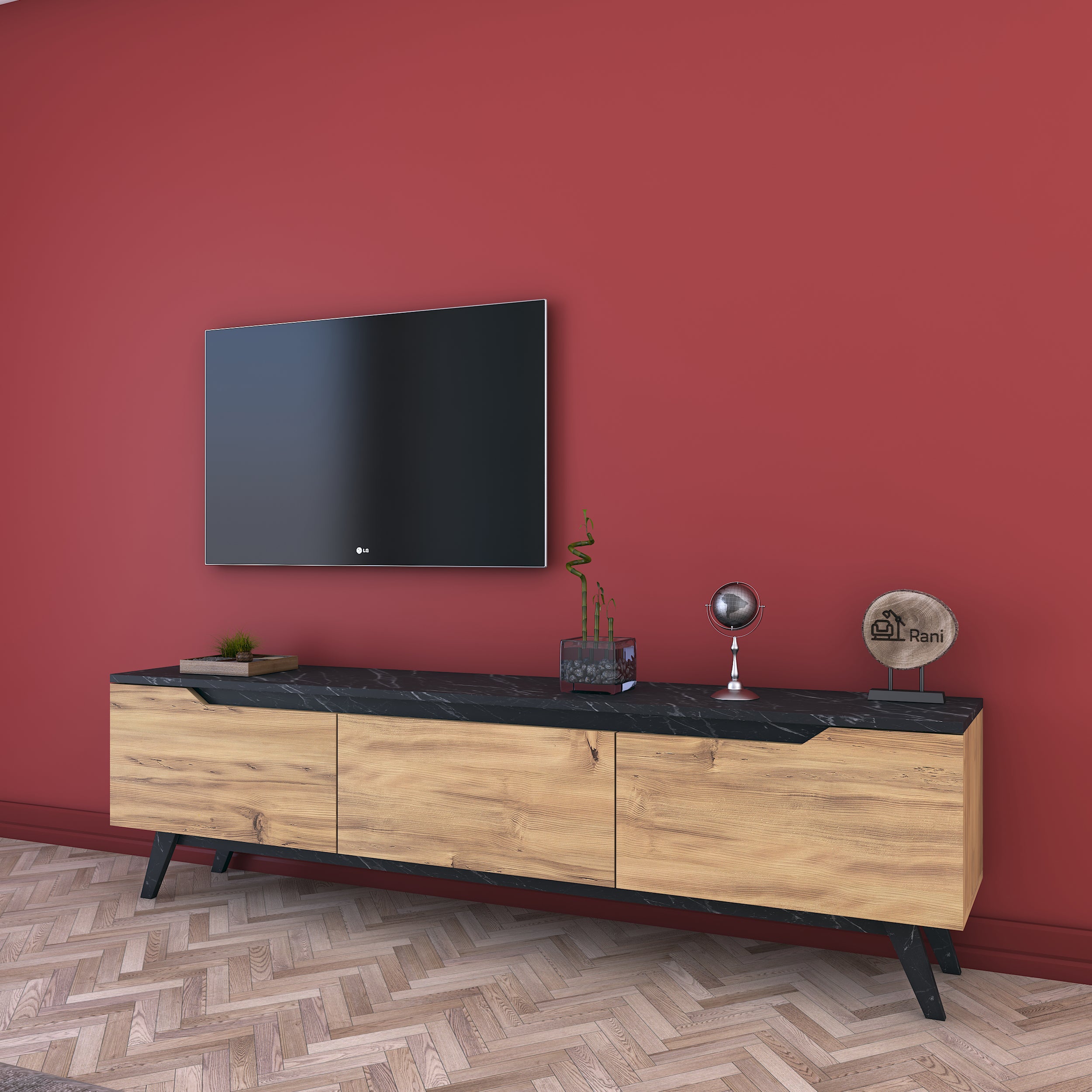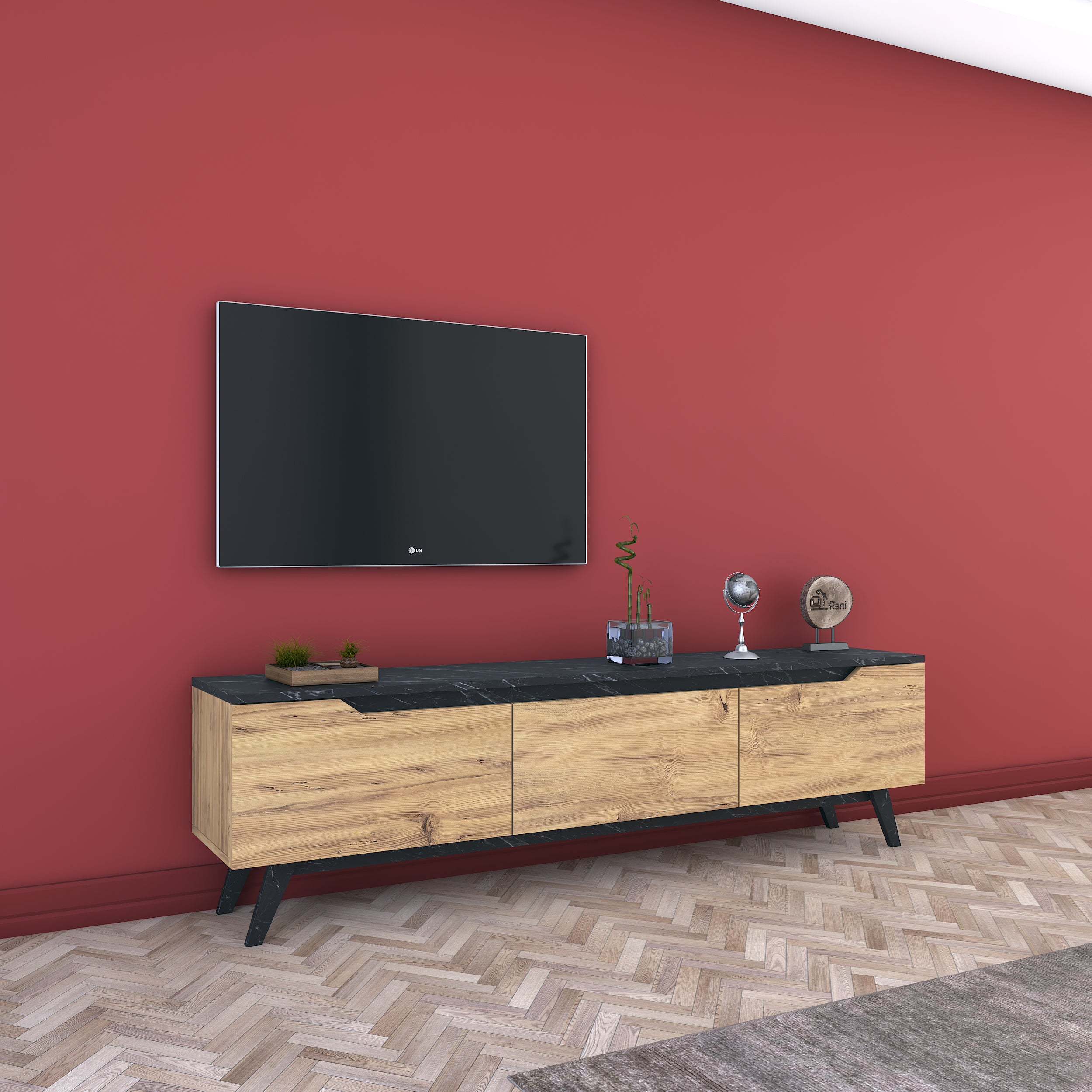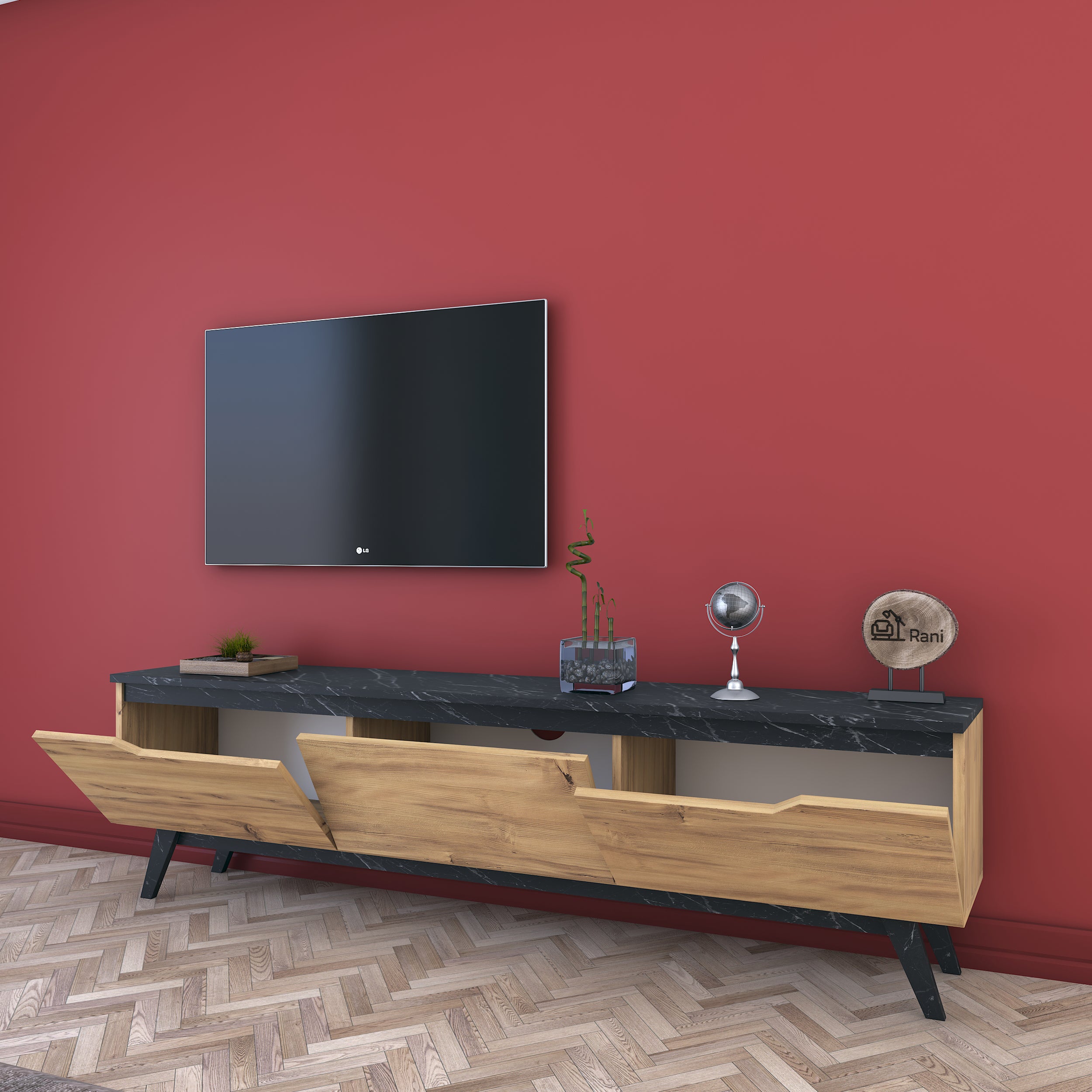 מזנון חלומי ומעוצב בגוון עץ בהיר בשילוב שחור שיש