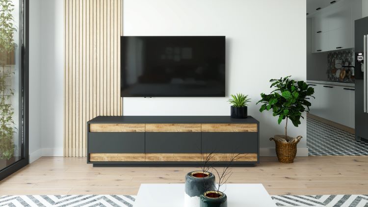 מזנון עומד בצבע אפור בשילוב עץ