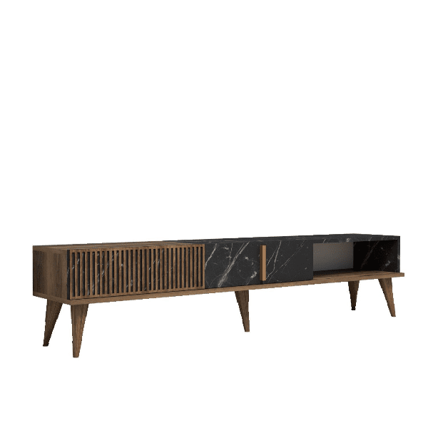 ✔ עיצוב מודרני – מזנון בעיצוב אלגנטי בצבע אגוז עם שילוב שחור, שמביא מראה יוקרתי לכל חלל.