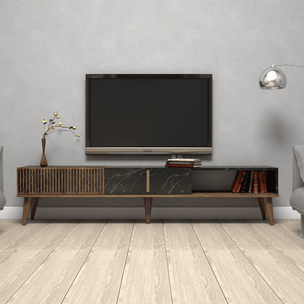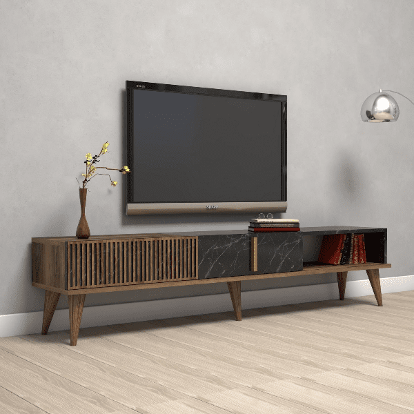 מזנון עומד בעיצוב מודרני – שילוב של אגוז ושחור