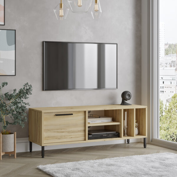 מזנון מעוצב בעל דלת נפתחת מלמטה לאחסון מירבי