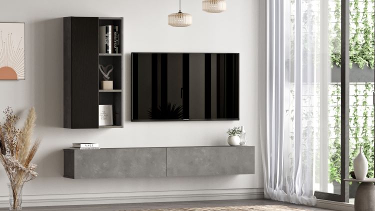 מזנון צף בצבע אפור משולב ארון צד
