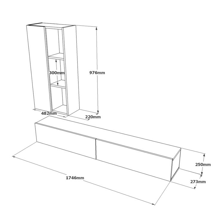 ובנוסף ישנו ארון צד צף בעל מדפים פתוחים להנחת חפצי נוי ודלת אחת סגורה