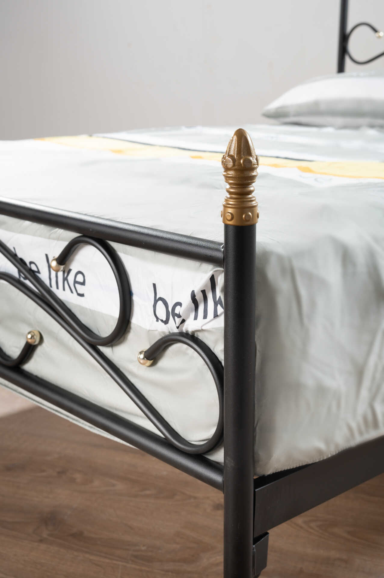 המיטה עשויה ממתכת במרקם ייחודי.
